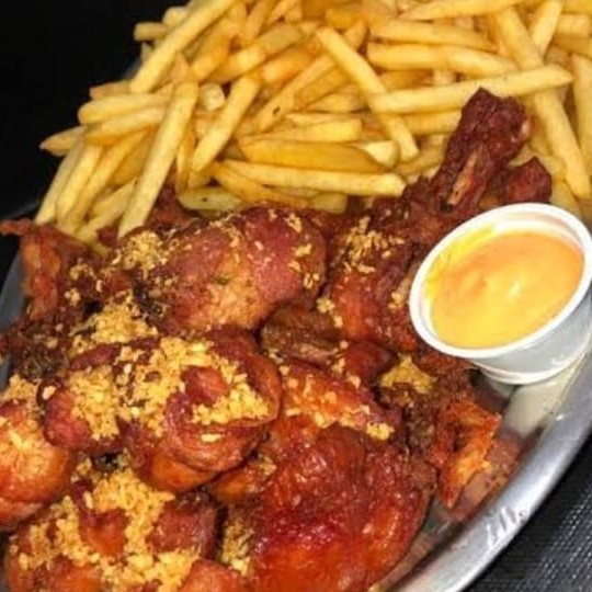 Acompanha arroz, feijão, e farofa. ( Marmita )