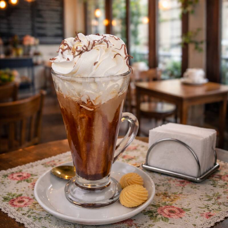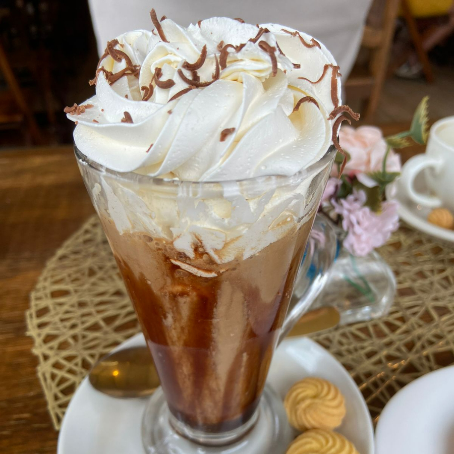 Frap. Cremoso com Expresso, Caramelo e Chantilly.