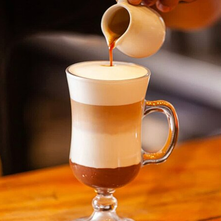 Café expresso, Calda de Caramelo Salgado e Leite Gourmetizado.