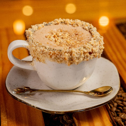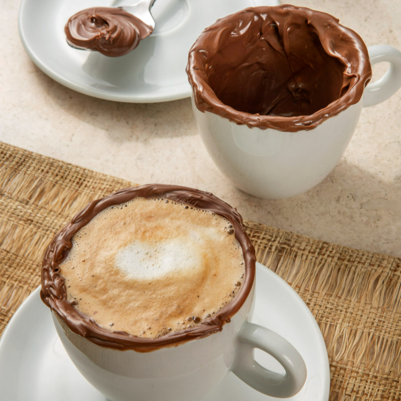 Cappuccino tradicional, borda de nutella e crema do leite.