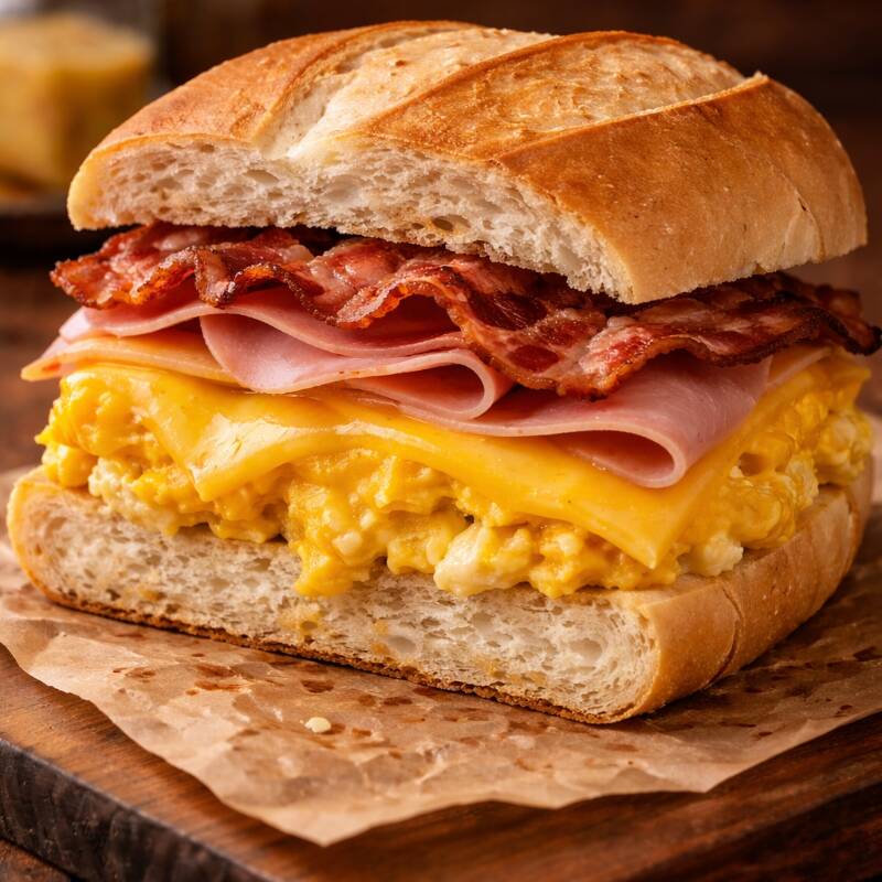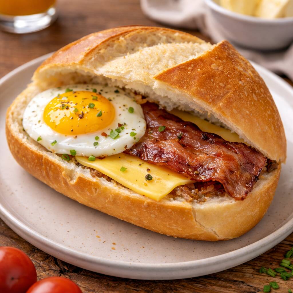 Pão, Ovo, Queijo, Bacon e Presunto.