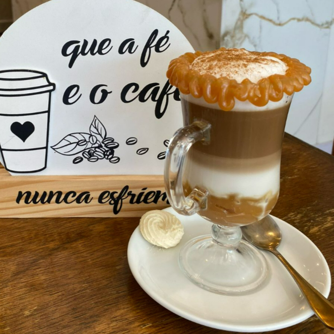 Cap. Cremoso, Doce de Leite Gourmet e Espuma Aveludada com Toque de Canela.
