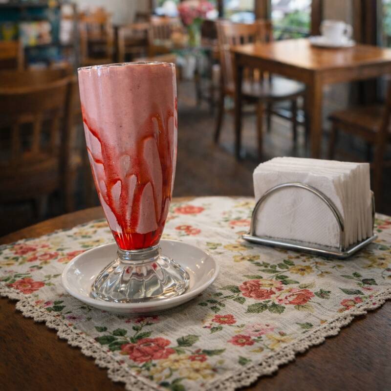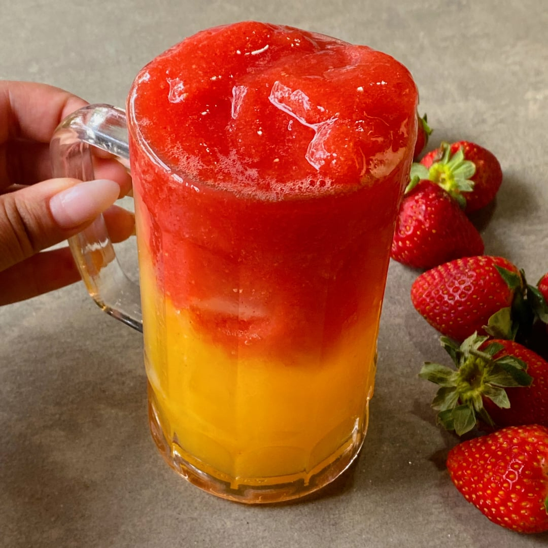 Suco de morango, laranja, Pepino, Gengibre e Linhaça.