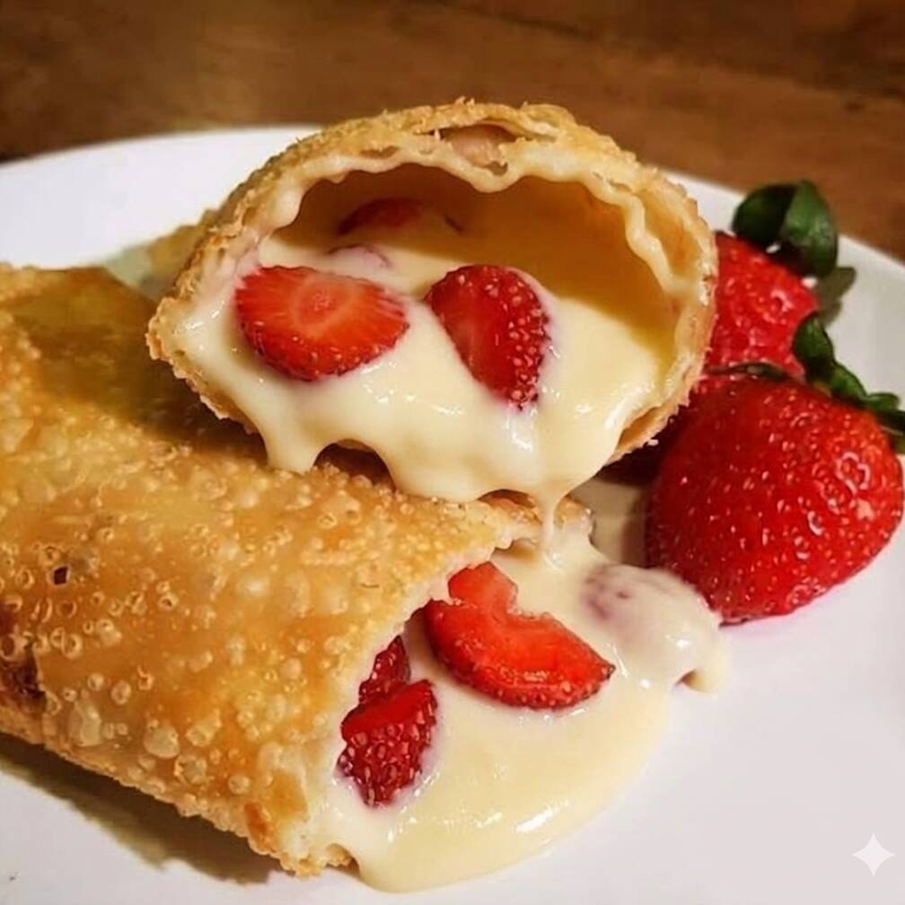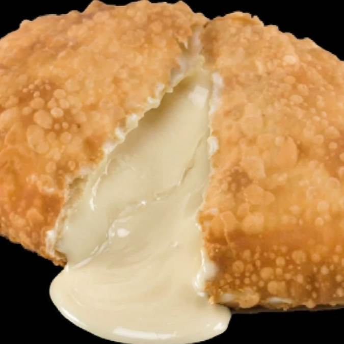 Doce, cremoso e irresistível! 😋 Recheado com chocolate branco cremoso, banana macia e um toque de canela, criando uma combinação doce, aromática e super saborosa, em uma massa crocante e douradinha.