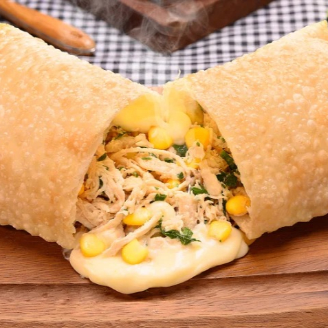 Cremoso e cheio de sabor! Recheado com frango desfiado bem temperado e queijo mussarela derretido, formando uma combinação suculenta e irresistível, em uma massa crocante e douradinha.