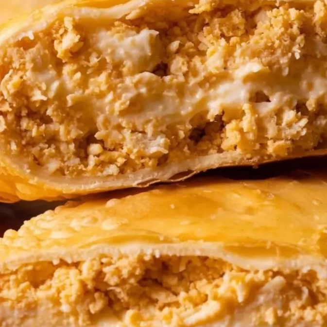 Cremoso e irresistível! 😋 Recheado com frango desfiado bem temperado e catupiry cremoso, formando uma combinação suculenta e cheia de sabor, em uma massa crocante e douradinha.