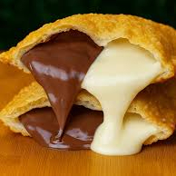 Doce, cremoso e irresistível! 😋 Recheado com chocolate ao leite e chocolate branco, formando uma combinação perfeita e super cremosa, em uma massa crocante e douradinha.