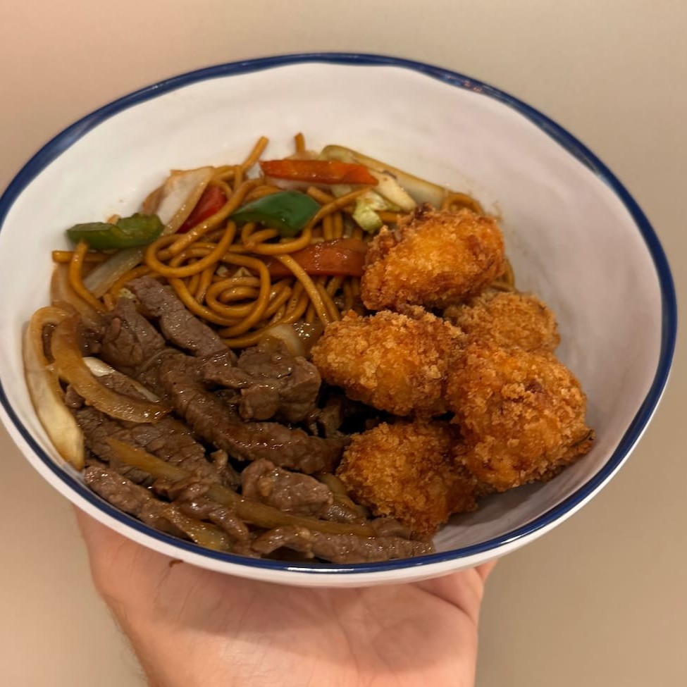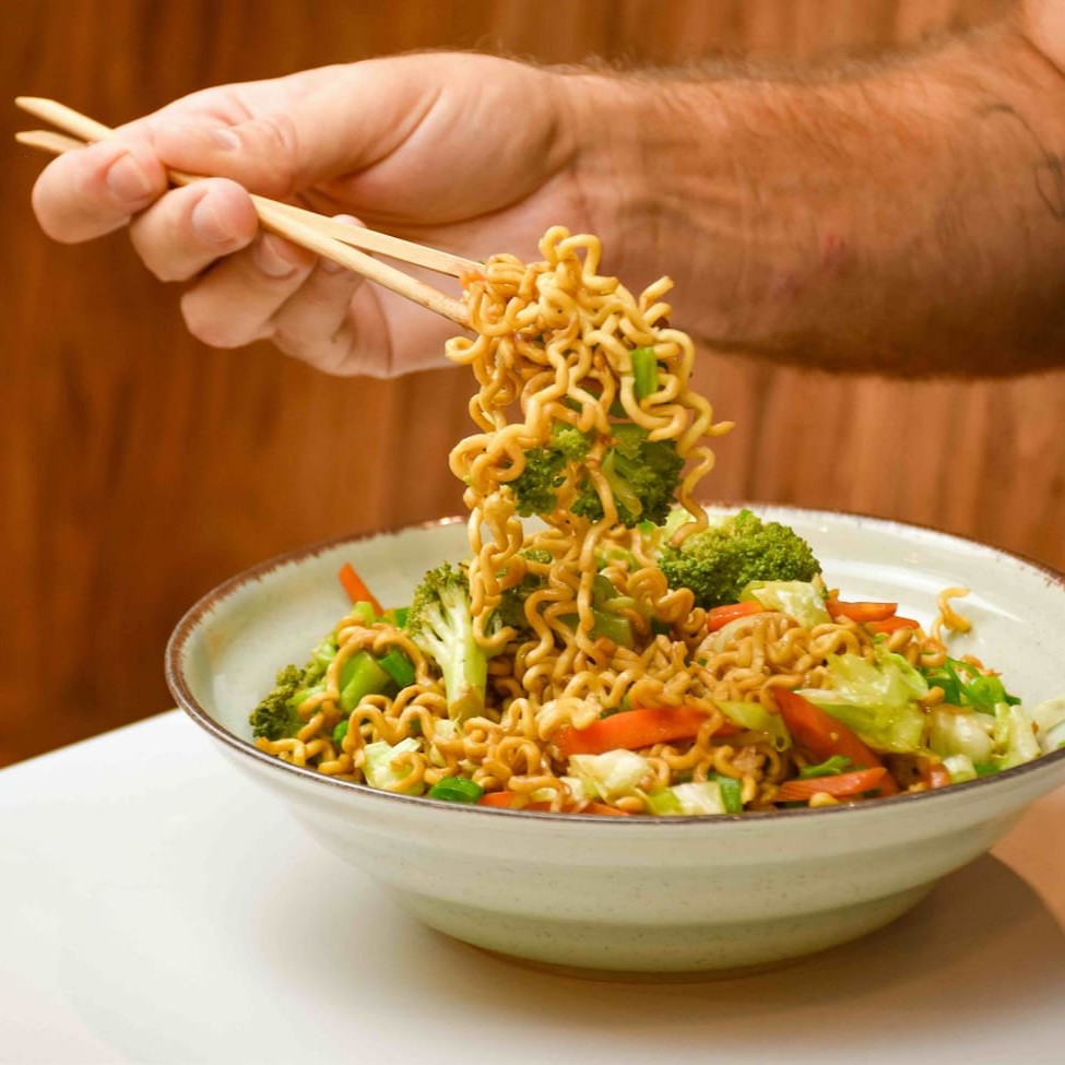 Yakisoba feito na hora com legumes frescos, carne bovina e molho especial (450gr)