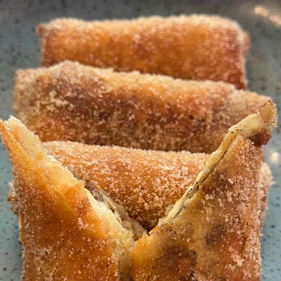 Crocante rolinho doce com duas opções de sabor, banana com canela ou romeu e julieta. 3 unidades.