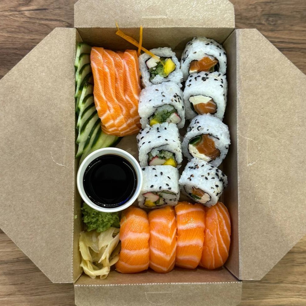 Nosso combinado perfeito para 1 pessoa! 16 peças deliciosas! 4 sushis salmão 4 Philadelphia uramaki 4 california 4 sashimis