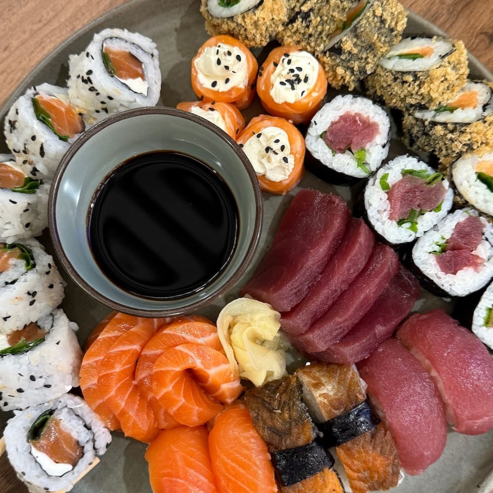 Nosso combinado para quem adora um sushi! 30 peças deliciosas! 2 sushi salmão 2 sushi atum 2 sushi salmão skin 4 california 4 kappa maki 4 Philadelphia 4 hot Philadelphia 4 uramaki salmão skin 4 atum maki