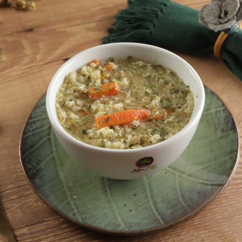 Peito de frango, arroz integral, cenoura, batata doce, salsinha, azeite, sal rosa e temperos naturais. 300ml, 273 kcal