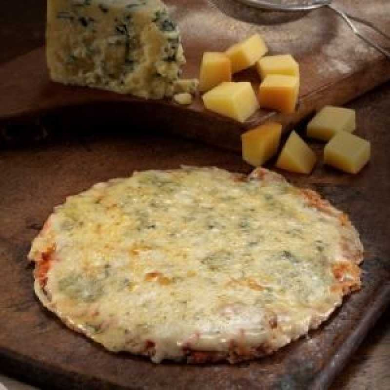 Pizza Fit de Três Queijos feita com massa artesanal feita com batata-doce e farinha 100% integral, coberta com mussarela, gorgonzola e provolone, todos zero lactose. Aro: 18cm - Peso: 130g. Ingredientes Queijo mussarela sem lactose, batata doce, farinha de trigo integral, queijo gorgonzola sem lactose, queijo provolone sem lactose, tomate,ovo, óleo de girassol, sal.
