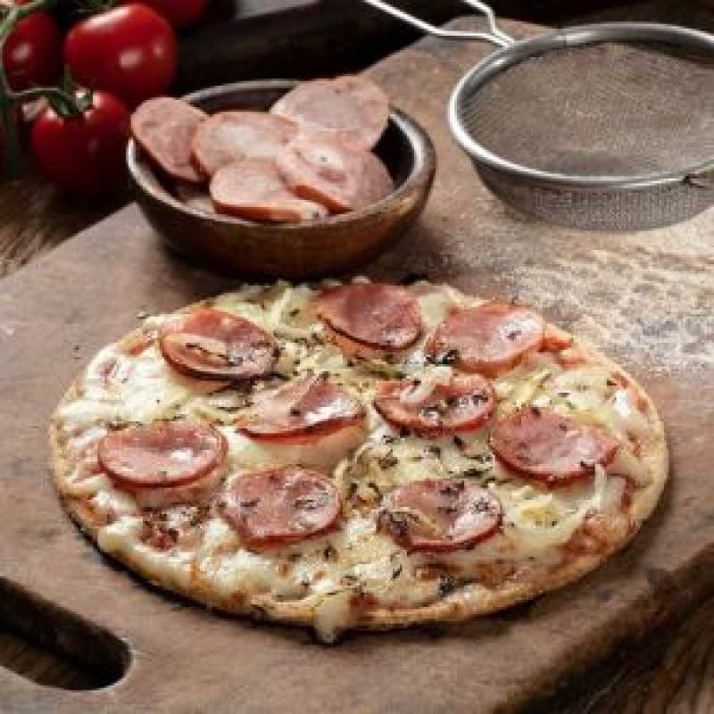 A Pizza Fit de Calabresa é feita com massa artesanal de batata-doce e farinha 100% integral, coberta com mussarela, linguiça calabresa, cebola e orégano. Não precisa descongelar! Uma refeição muito prática, você pode preparar no forno, frigideira ou air fryer em questão de minutos. Isso sem deixar de lado a saúde e a dieta. Experimente também: Pizza Fit de Três Queijos, Pizza Fit de Marguerita, Pizza Fit de Frango com Requeijão, entre outras.
