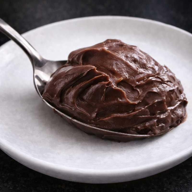 Leite condensado zero lactose, cacau 70%, creme de leite zero lactose e biomassa de banana verde. 143 kcal