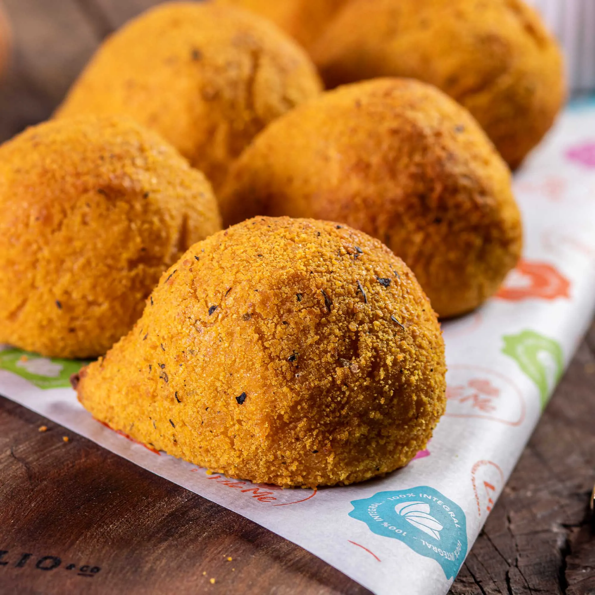 que era bom ficou ainda melhor!!!!! Agora nossa coxinha tem tamanho lanchonete! Crocante por fora, cremosa por dentro e no tamanho certo para aquele lanche especial! Curte essa delicia! INGREDIENTES peito de frango moído, mandioca, farinha de arroz integral, azeite de oliva, polvilho doce, farinha de linhaça, cheiro verde, açafrão e sal.