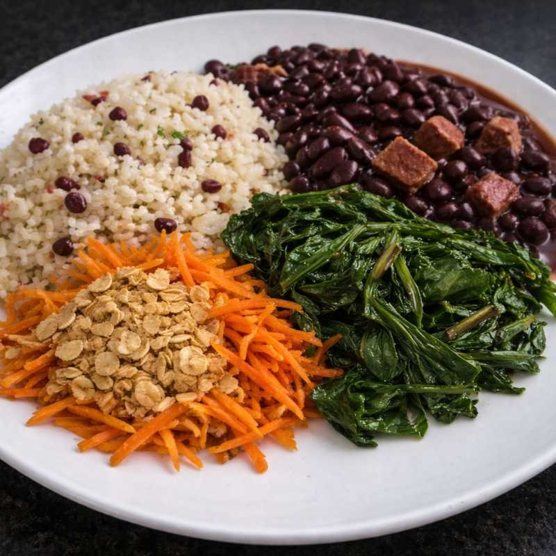 Uma versão leve da tradicional feijoada, acompanhada de arroz 7 grãos, couve manteiga refogada e uma farofa especial. Ideal para quem busca sabor e saúde em uma única refeição. • Sem Glúten, Zero Lactose, Sem Conservantes E Ultracongelado. • Ingredientes: Feijão preto, arroz multigrãos, aveia, quinoa, linguiça de frango, lombinho, couve manteiga, cenoura, proteína isolada da ervilha, azeite, chia, alho, cebola, salsa e sal. • Modo De Consumo: Aquecer em micro-ondas, airfryer ou forno convencional de 5 a 8 min*ver embalagem* 372 calorias, 59g de proteínas, 400g