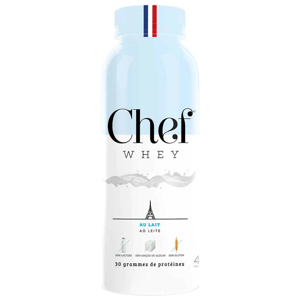 Descubra o sabor puro, suave e cremoso do leite em sua melhor versão: saudável, proteica e sem lactose. O Chef Whey é perfeito para quem busca performance, bem-estar e praticidade no dia a dia, sem abrir mão de leveza e versatilidade. Com 30g de proteína e apenas 134 kcal por porção, o Chef Whey Ao Leite é a escolha perfeita para incluir em vitaminas, receitas proteicas ou shakes com frutas, potencializando o sabor natural dos seus ingredientes sem sobrecarregar o paladar. Um verdadeiro sabor coringa, que oferece praticidade e leveza em cada dose. Sua fórmula é zero lactose, garantindo melhor digestão e qualidade de vida para quem possui intolerância, além de ser livre de glúten, sem açúcares adicionados e totalmente isento de gorduras totais e saturadas.