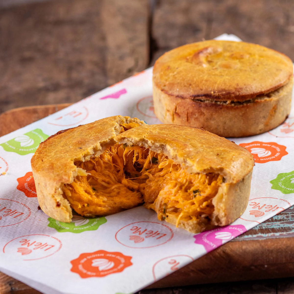 Agora a gente apelou né? Nossa empada de frango espalha muito sabor e amor!! Massa sem glúten, sem lactose e que derrete na boca, quem experimentou já viciou. Sem falar do recheio de frango que é SUPEER CREMOSO e tem o toque do nosso temperinho especial LIFE ME. Equilíbrio perfeito de massa e recheio cremoso e molhadinho. Já está com fome ne!? Então bora para os ingredientes Ingredientes: Peito de frango desfiado, farinha de arroz integral, farinha de grão de bico, manteiga ghee, polvilho doce, água, ovo de galinha, creme de leite sem lactose, linhaça, tempero, fécula de batata, sal, cheiro verde, azeite de oliva e espessante goma xantana. Sem glúten, sem lactose e sem açúcar.