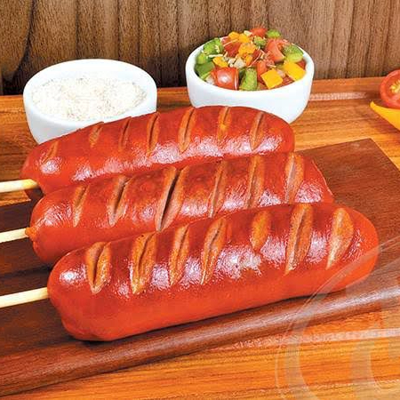 Delicioso espetinho de salsichao duplo