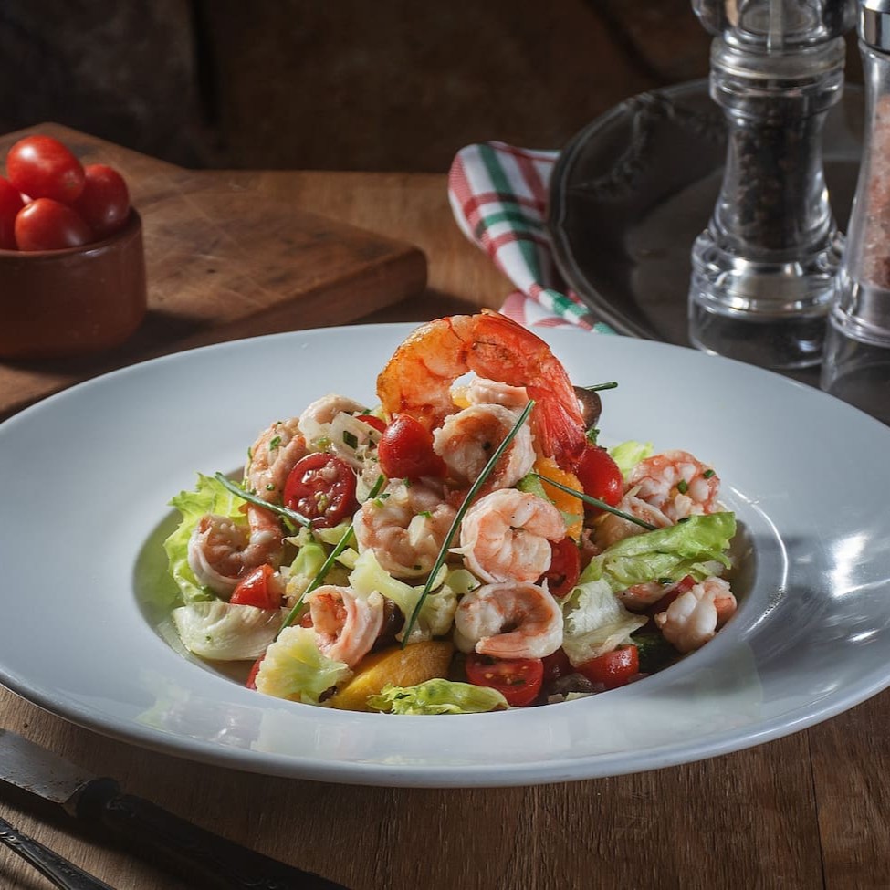 Nossa salada Al Mare, preparado com: alface crocante, manga, tomates cereja e brócolis frescos. Adicionando Azeitonas e camarões suculentos. Finalizada com um toque picante de pimenta dedo de moça Ideal para quem busca uma refeição leve, saborosa e cheia de personalidade!