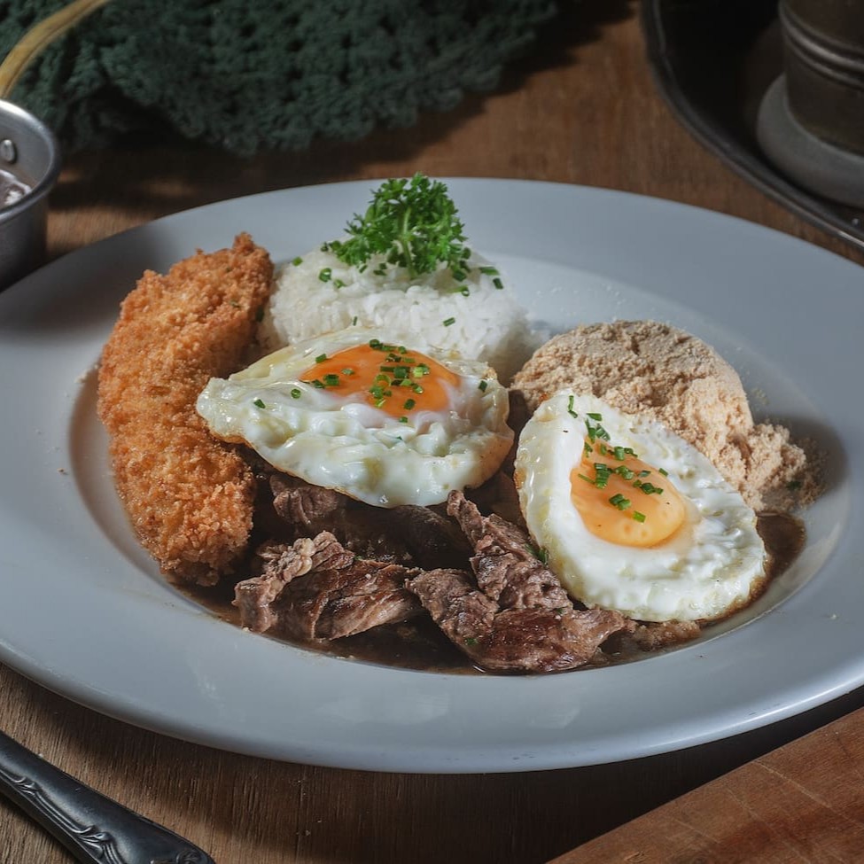 Preparado com tiras de carne macia e suculenta, este prato é uma explosão de sabores, acompanhada por: Arroz branquinho e soltinho, feijão fresquinho e ovo frito perfeito, o picadinho é complementado pela farofa crocante e um banana frita empanada, criando um equilíbrio perfeito entre o salgado e o doce. Ideal para um almoço em família ou um jantar aconchegante, o nosso Picadinho de Carne é a escolha perfeita para quem valoriza a culinária caseira e saborosa.