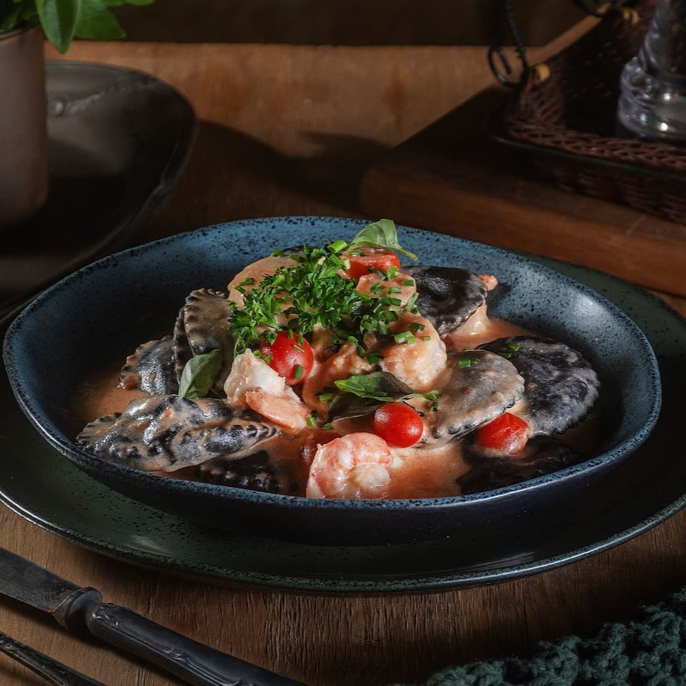 Delicados e frescos, nossos raviolis são massas feitas à mão e tingidas naturalmente com tinta de lula, proporcionando um visual único e um sabor marcante. O recheio é uma combinação sofisticada de camarões suculentos e cremoso cream cheese, que se fundem em cada mordida, criando uma explosão de sabores do mar. Servido com um toque especial de molho de manteiga de ervas, o prato é perfeito para quem busca uma refeição cheia de personalidade. Uma massa ideal para um jantar romântico ou um almoço elegante, o Ravioli Tinta de Lula promete encantar os amantes da culinária italiana e frutos do mar. Sobre a gente: -Nossos pratos são artesanais - Produtos frescos e feitos na nossa cozinha -Atendimento Rápido -Entrega Segura - Localizado na Barra da Tijuca