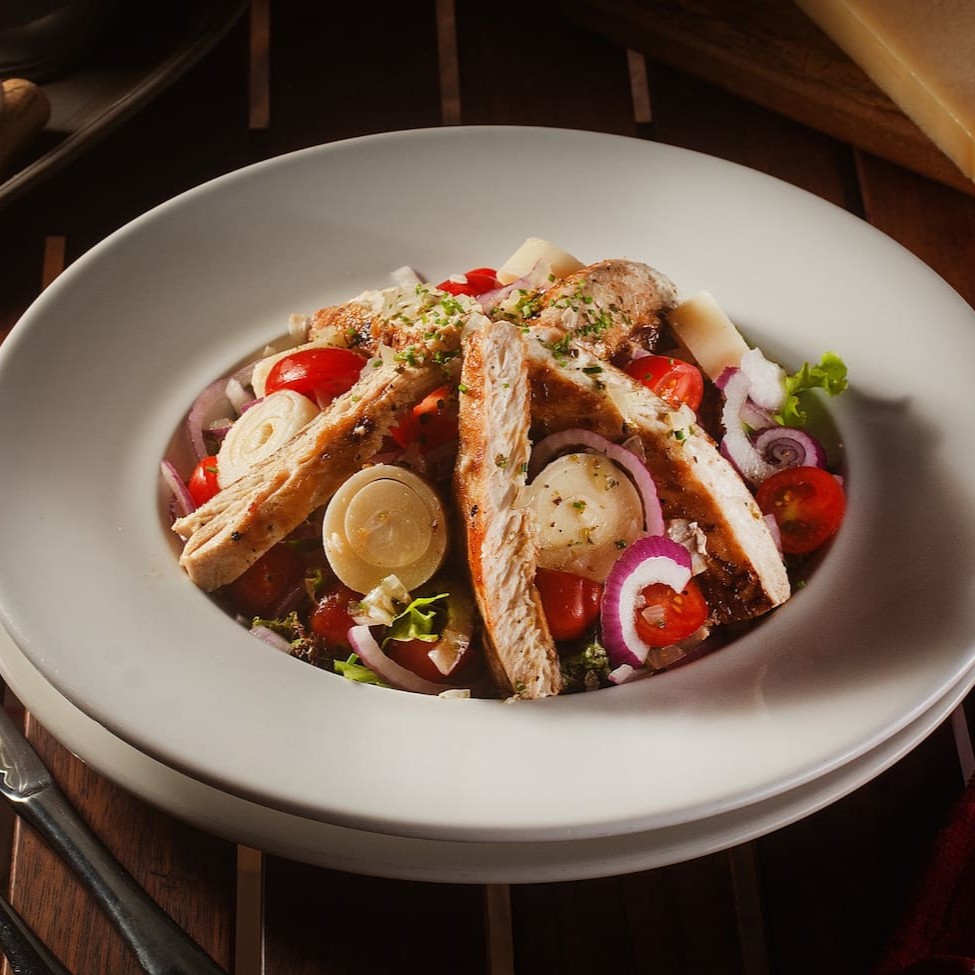 Este prato clássico é preparado com alface romana crocante, perfeitamente temperada e acompanhada de suculentos pedaços de frango grelhado, marinados em especiarias que realçam seu sabor. Nossa receita é complementada por croutons dourados e crocantes, que oferecem uma textura deliciosa, e um molho Caesar cremoso, feito com ingredientes selecionados, que traz um toque de umami a cada garfada. Ideal para um almoço leve ou um jantar nutritivo, a Salada Caesar com Frango é uma escolha perfeita para quem busca um prato saudável sem abrir mão do sabor. Faça sua refeição mais especial com essa combinação equilibrada de ingredientes frescos e saborosos.