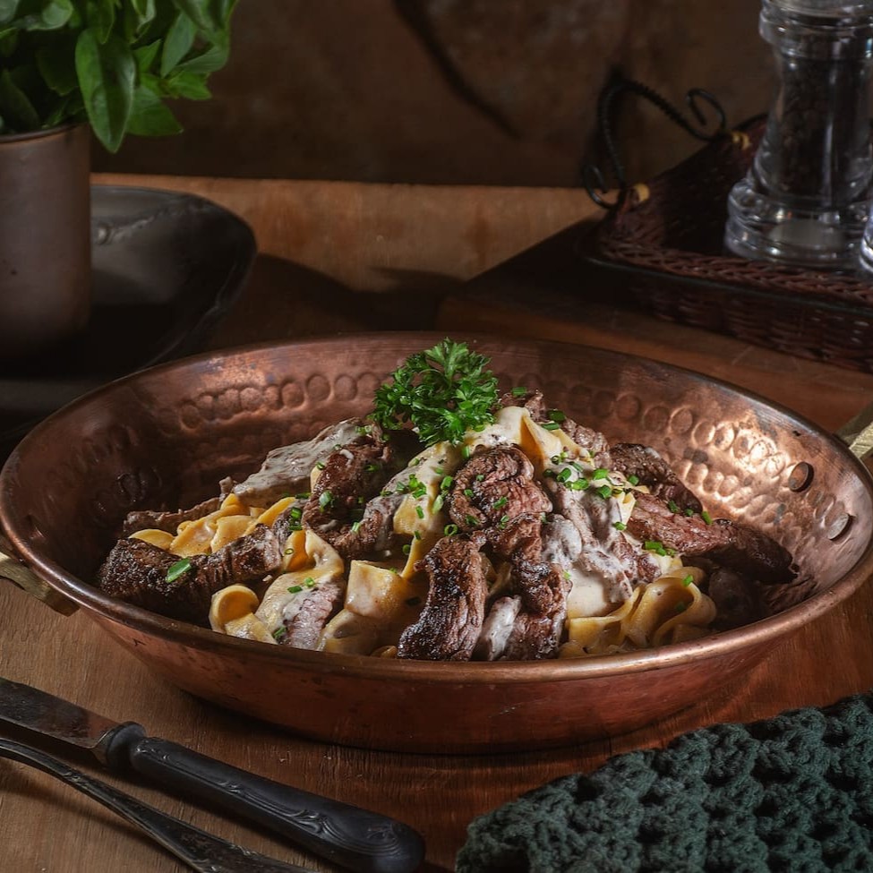 Fettuccine artesanal servido com lascas de carne bovina macia, ao molho encorpado e finalizado com ervas frescas. Uma refeição robusta e saborosa, ideal para duas pessoas que apreciam uma combinação de massa e proteína com toque caseiro. #fettuccine #carne #massa #ervasfrescas #carnebovina #comidaitaliana