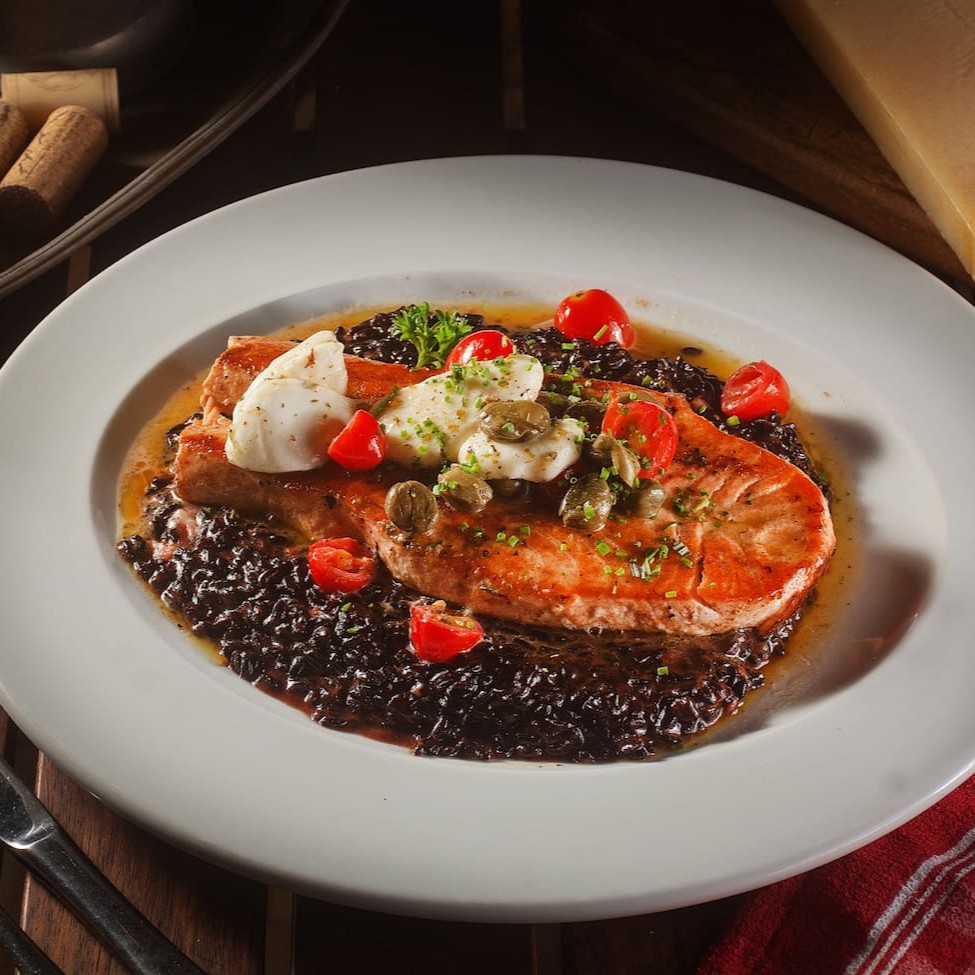 Uma expressão de sofisticação. Nosso salmão grelhado, com perfeição de sabor, reflete a essência da culinária refinada. Uma experiência gastronômica onde cada mordida é uma celebração da frescura e elegância, com tradição.