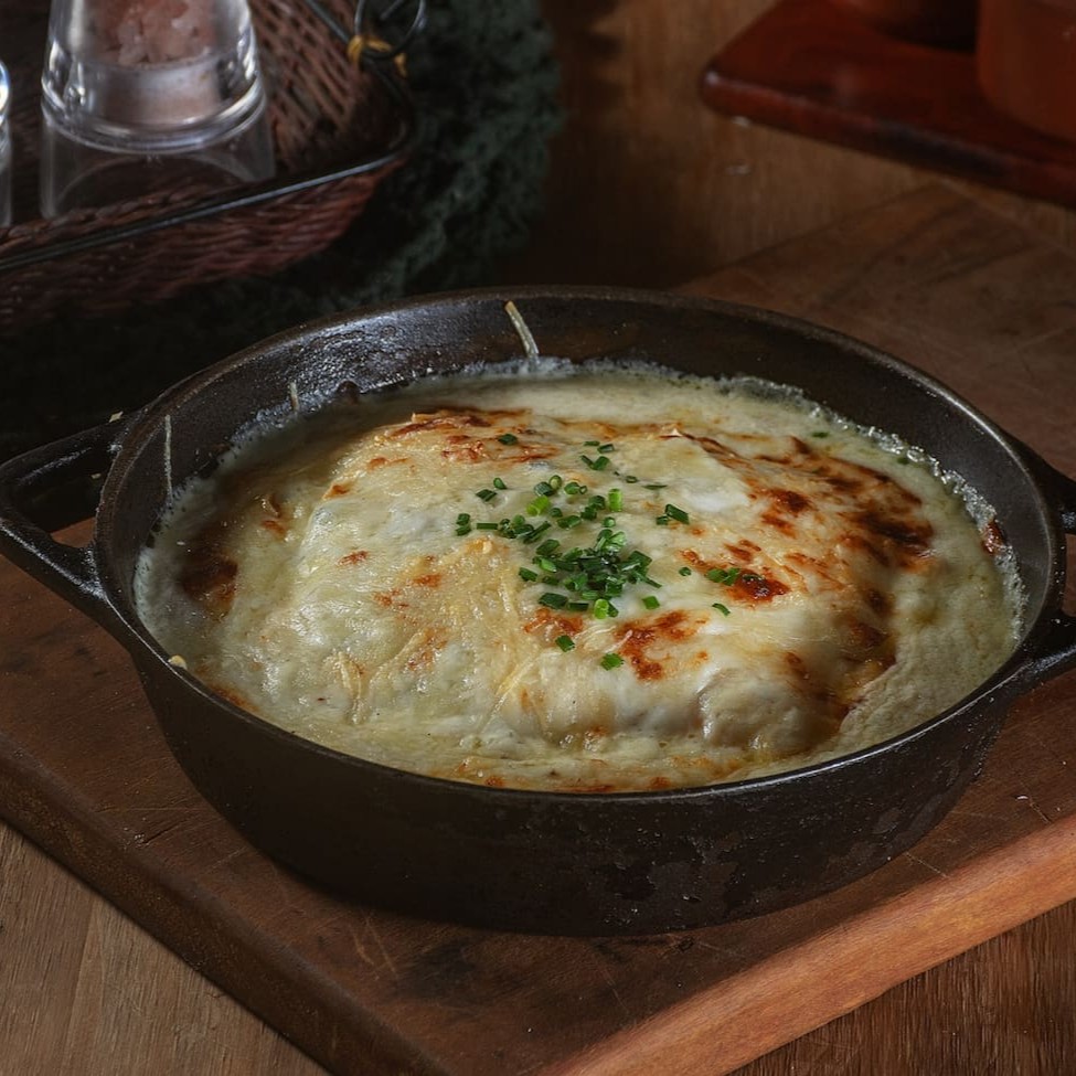 Feito com gnocchi macio e fresco, este prato é envolto em uma combinação luxuosa de queijos selecionados: muçarela, gorgonzola, parmesão e queijo prato, que se derretem perfeitamente juntos, criando uma experiência cremosa e saborosa. Finalizado com uma crosta dourada e crocante, resultado do gratinado no forno, cada garfada é uma festa de texturas que derretem na boca. Servido com um toque de ervas frescas, este prato é ideal para os amantes de queijo e para quem busca um momento de conforto gastronômico. Perfeito para um jantar especial ou uma refeição aconchegante em casa, o nosso Gnocchi aos 4 Queijos Gratinado promete transformar qualquer refeição em uma celebração de sabores!