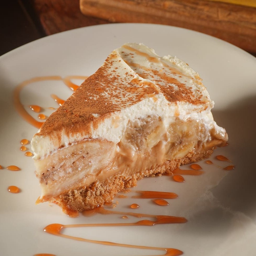 Deliciosa torta de banana, com camadas macias de banana caramelizada e uma crosta dourada e amanteigada. Um deleite irresistível que combina doçura e textura em cada mordida.