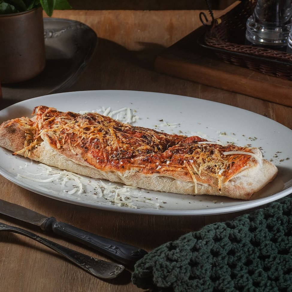 Esta iguaria sofisticada apresenta uma casca de mozzarella suave que, ao ser cortada, revela um recheio cremoso e irresistivelmente macio. Perfeita para iniciar uma refeição ou para um momento de puro prazer gourmet.