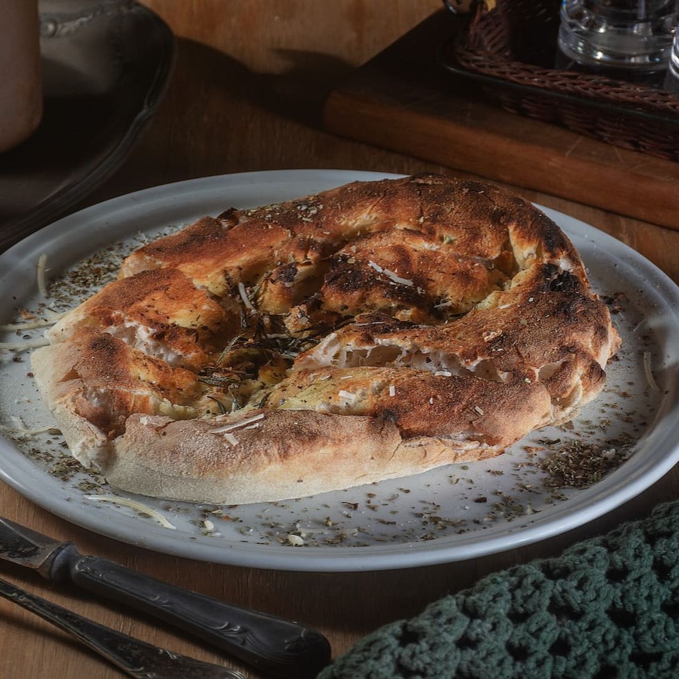 Preparada com uma massa leve e arejada, ela é coberta generosamente com sal grosso crocante, azeite de oliva extra virgem e um toque aromático de alecrim fresco. Ideal para acompanhar uma refeição ou simplesmente saborear como um petisco.