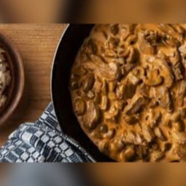 Delicioso strogonoff de carne em embalagem 500ml. ###Contém champignons. ###