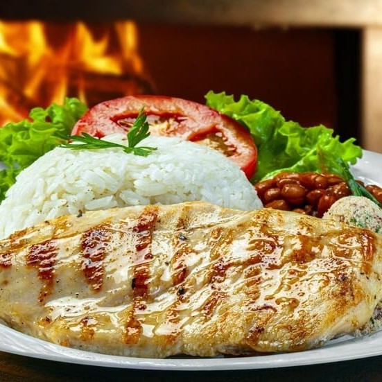 Nosso delicioso frango grelhado acompanhado de arroz, feijão e mais 1 acompanhamento que vc escolhe. Pode adicionar mais itens se desejar.