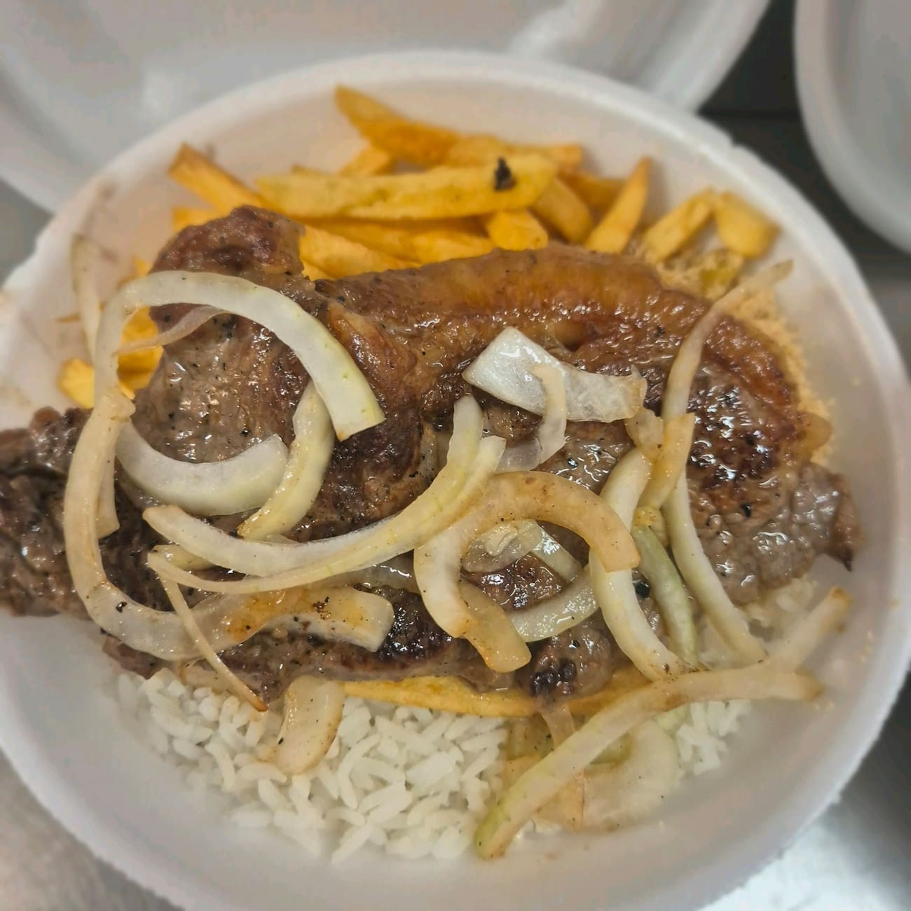 Delicie-se com nossa generosa porção de contrafilé primorosamente temperado com as tradicionais especiarias da casa. Este nobre corte de carne é delicadamente regado ao azeite, com um leve toque de cebola, para realçar ainda mais seu sabor. Acompanha uma abundante porção de fritas, preparadas com batatas frescas e naturais, garantindo uma experiência gastronômica mais autêntica e saborosa. Escolha o tamanho da caixa que melhor atende ao seu apetite. Este é um dos nossos petiscos mais populares, perfeito para compartilhar ou simplesmente saborear sozinho. Uma combinação clássica, que nunca decepciona!