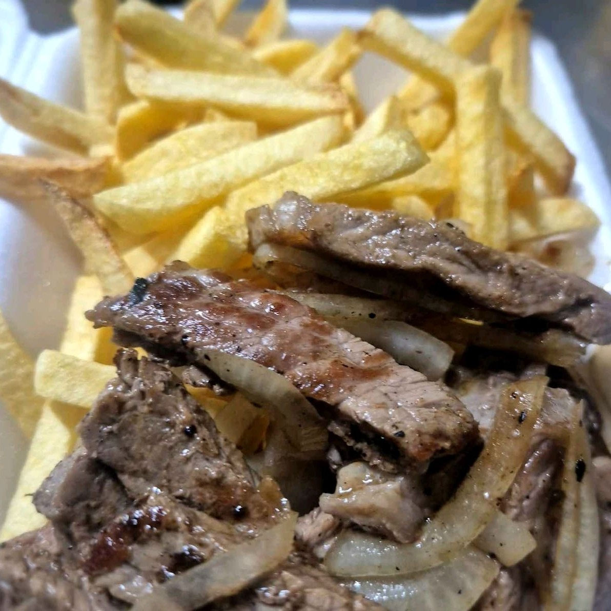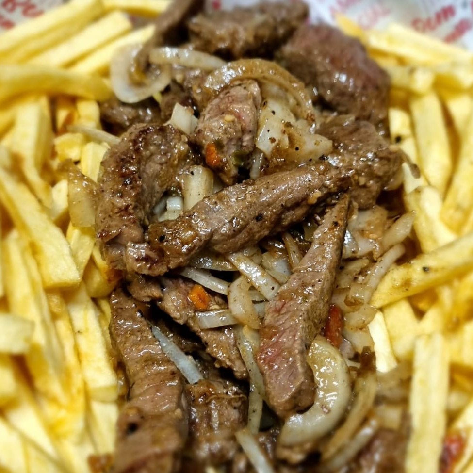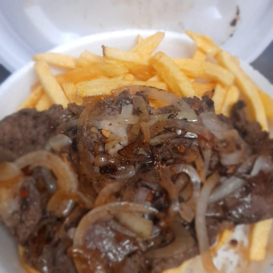 Delicioso petisco de contra filé com fritas para servir 1 pessoa. Opção ideal para vc petiscar em casa. Item em mesma embalagem.