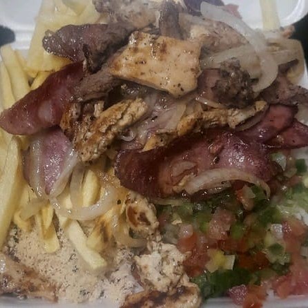 Delicioso mix de alcatra, linguiça calabresa e filé de frango, ambos grelhados na chapa, regados ao azeite e com um toque de cebola. Prato acompanha 4 opções à sua escolha.