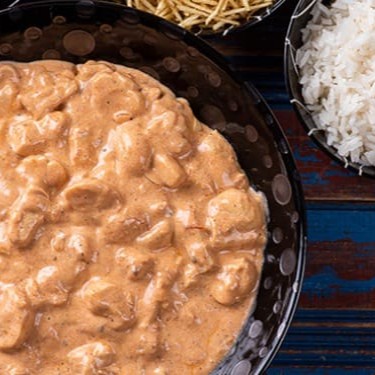Descubra o inigualável sabor do nosso Strogonoff de Frango, cuidadosamente preparado para servir até duas pessoas. Este prato é apresentado em companhia de um arroz branco genuinamente soltinho. Além disso, oferecemos a liberdade de escolher mais dois acompanhamentos de sua preferência, incrementando ainda mais a sua experiência gastronômica. Aprecie cada detalhe, pois os itens deste prato são enviados em embalagens separadas para preservar a integridade e frescor dos ingredientes.