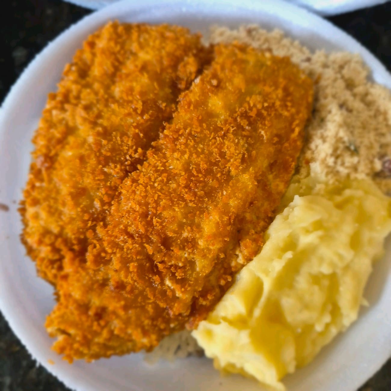 Delcioso filé de frango empanado, acompanhado de arroz, feijão e mais 1 acompanhamento que vc escolhe. Adicione mais itens se desejar.