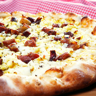 molho, mussarela, cebola, bacon e ovo