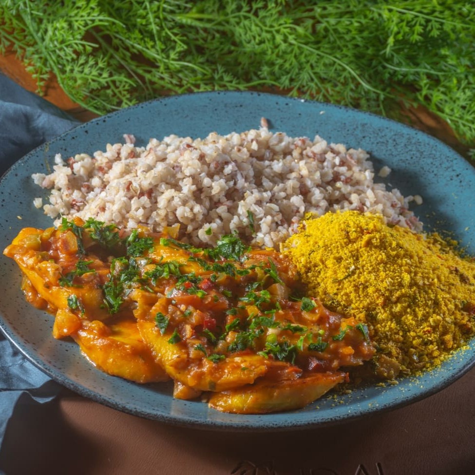 Nossa moqueca de banana da terra é cozida em um molho de leite de coco e arroz de coco, temperado com especiarias e um toque de dendê. Aproveite essa maravilha com o Natural!