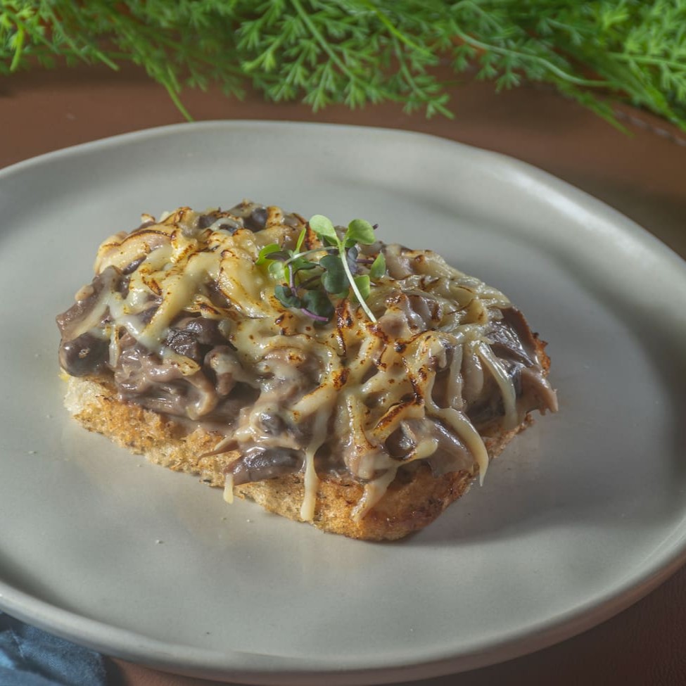 Bruschetta de shitake e shimeji. Nossa Bruschett é bem rechiada servida com shitake e shimeji, cogumelos, no pão de ervas sem glúten feito na casa! Aproveite essa maravilha com o Natural!