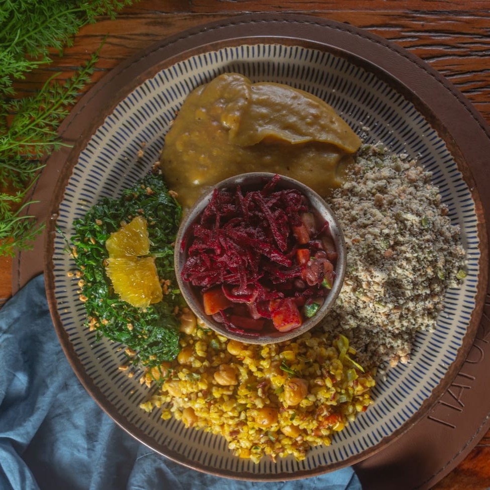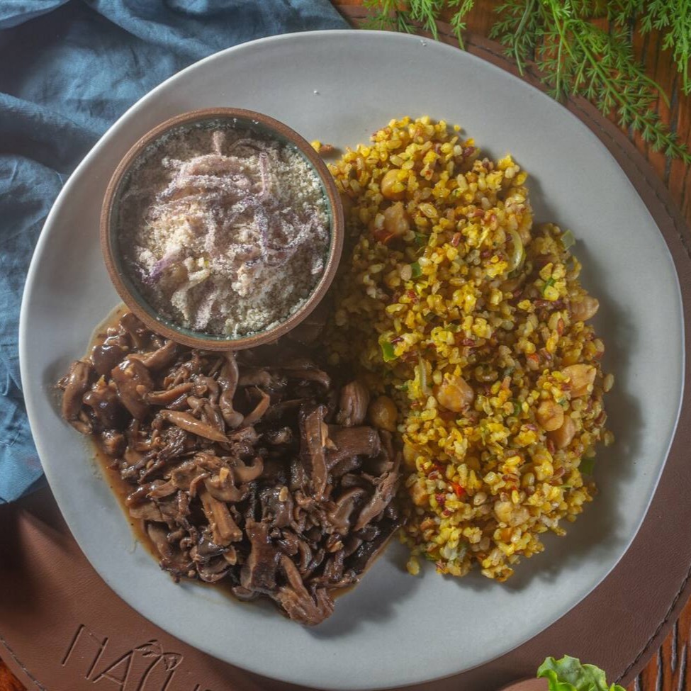 Experimente uma versão deliciosa e inovadora do clássico brasileiro com nossa Feijoada Vegana com arroz integral com grão de bico e especiarias, farofa de sementes, couve ao alho, purê de banana da terra e laranja. A textura e o sabor são tão satisfatórios quanto a feijoada tradicional, mas sem ingredientes de origem animal. Aproveite essa maravilha com o Natural!