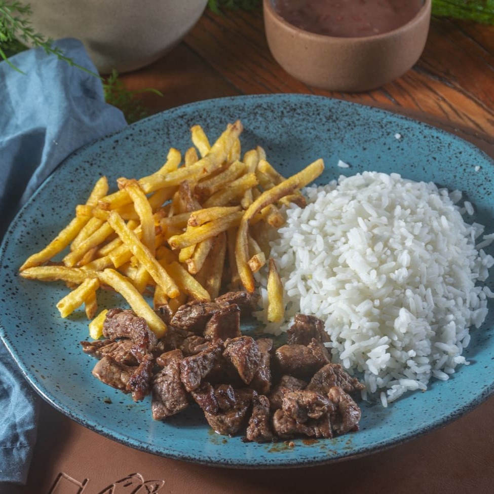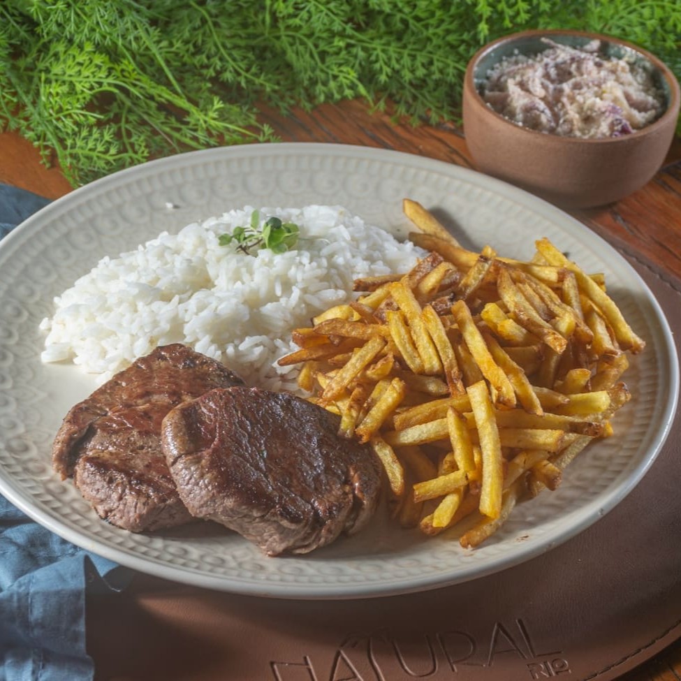 Picadinho de filé mignon, cuidadosamente refogado em pedaços suculentos, acompanhado por arroz branco soltinho e feijão bem temperado. Complete sua refeição com a escolha entre batata frita crocante ou purê de batata cremoso. Aproveite essa maravilha com o Natural!