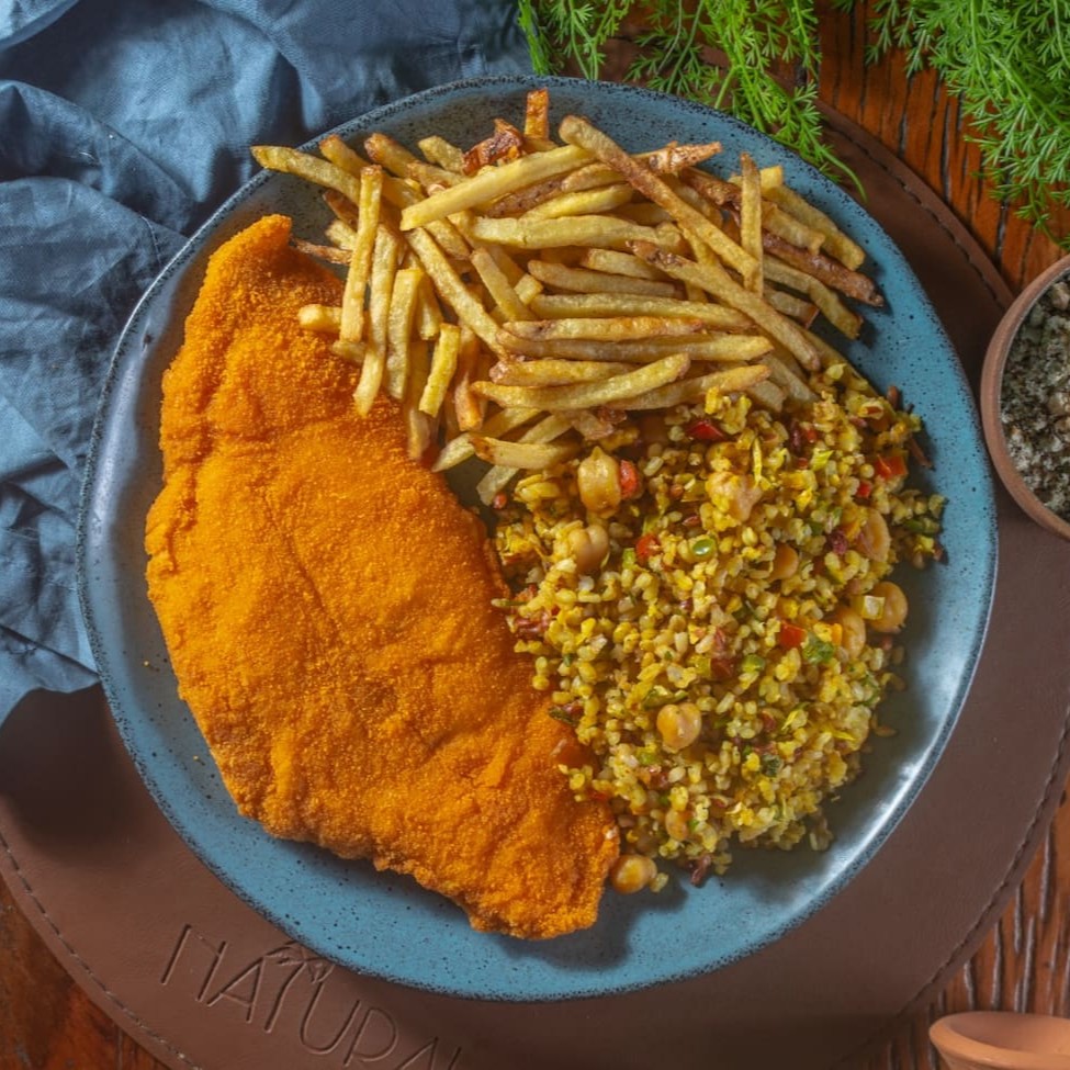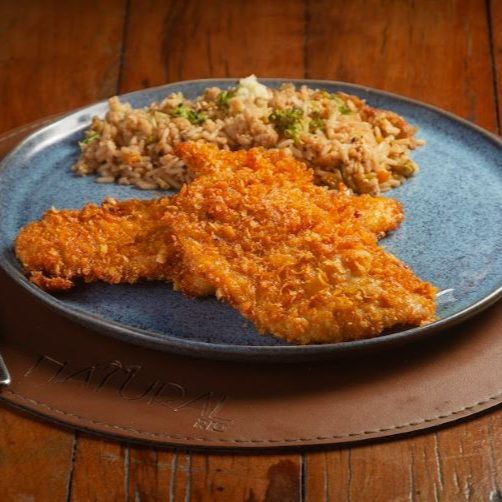 Desfrute da crocância irresistível do nosso Filé de Tilápia, um prato que combina sabor e textura em perfeita harmonia. Utilizamos filé de tilápia fresco, empanado na farinha de urucum e fritos. Mais 3 acompanhamentos a sua escolha. Aproveite essa maravilha com o Natural!