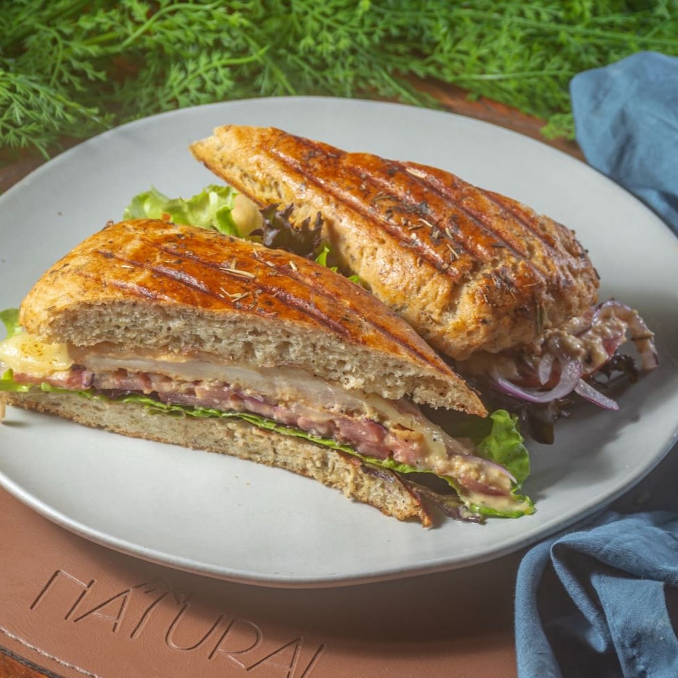 Delicioso sanduíche de filé de frango grelhado, acompanhado de queijo derretido, alface fresca, tomate suculento e cebola crocante. Tudo isso é servido em um pão artesanal, feito na casa, que complementa perfeitamente o sabor e a textura dos ingredientes. Aproveite essa maravilha com o Natural!