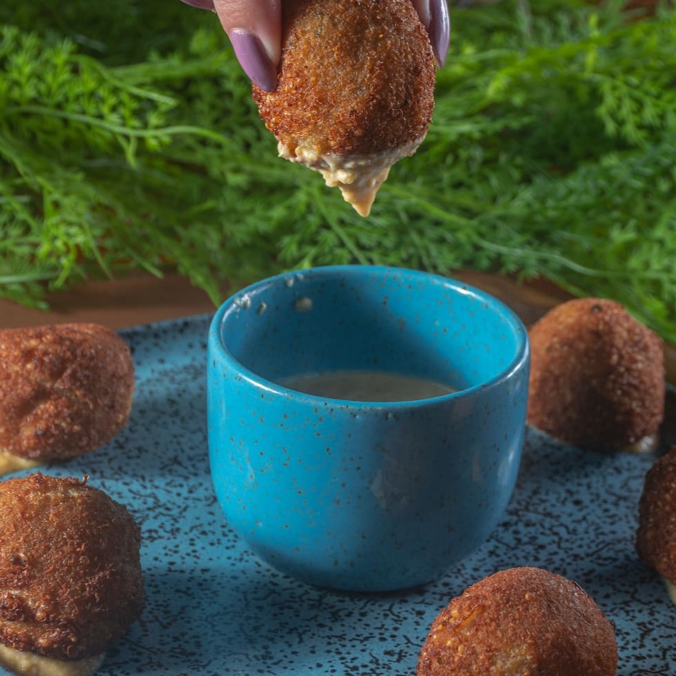 Nosso delicioso Peixinho frito super bem empanado e crocante, ideal para compartilhar antes de uma ótima refeição! Acompanha maionese vegana caseira. Aproveite essa maravilha com o Natural!