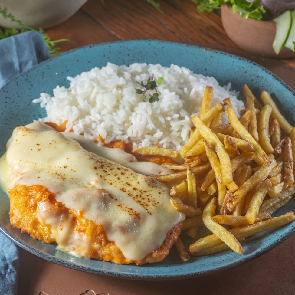 Nossa Parmegiana de Frango Saudável é preparada com um toque mais leve e nutritivo. Utilizamos peito de frango empanado, garantindo uma textura crocante e saborosa. E mais 3 acompanhamentos a sua escolha. Aproveite essa maravilha com o Natural!